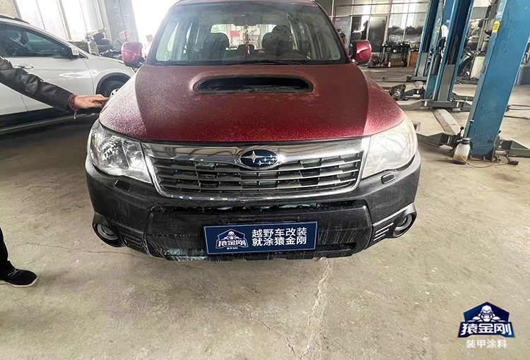 老款斯巴鲁森林人防护升级,局部喷涂猿金刚防刮装甲涂层抗冲耐磨防