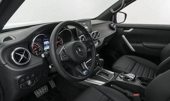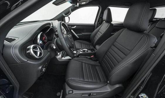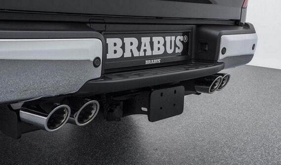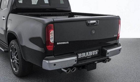 首先在外观方面,Brabus(巴博斯)为X-Class皮卡换装了黑色水厢罩、镀铬保险杠等,并于前扰流板处增设了LED日间行车灯,车顶也加装了LED投射灯,搭配双边四出排气尾管及20英寸铝合金轮毂和285/45R20的Continental、Pirelli或YOKOHAMA全地形胎,不仅看上去更运动,同时也更实用。